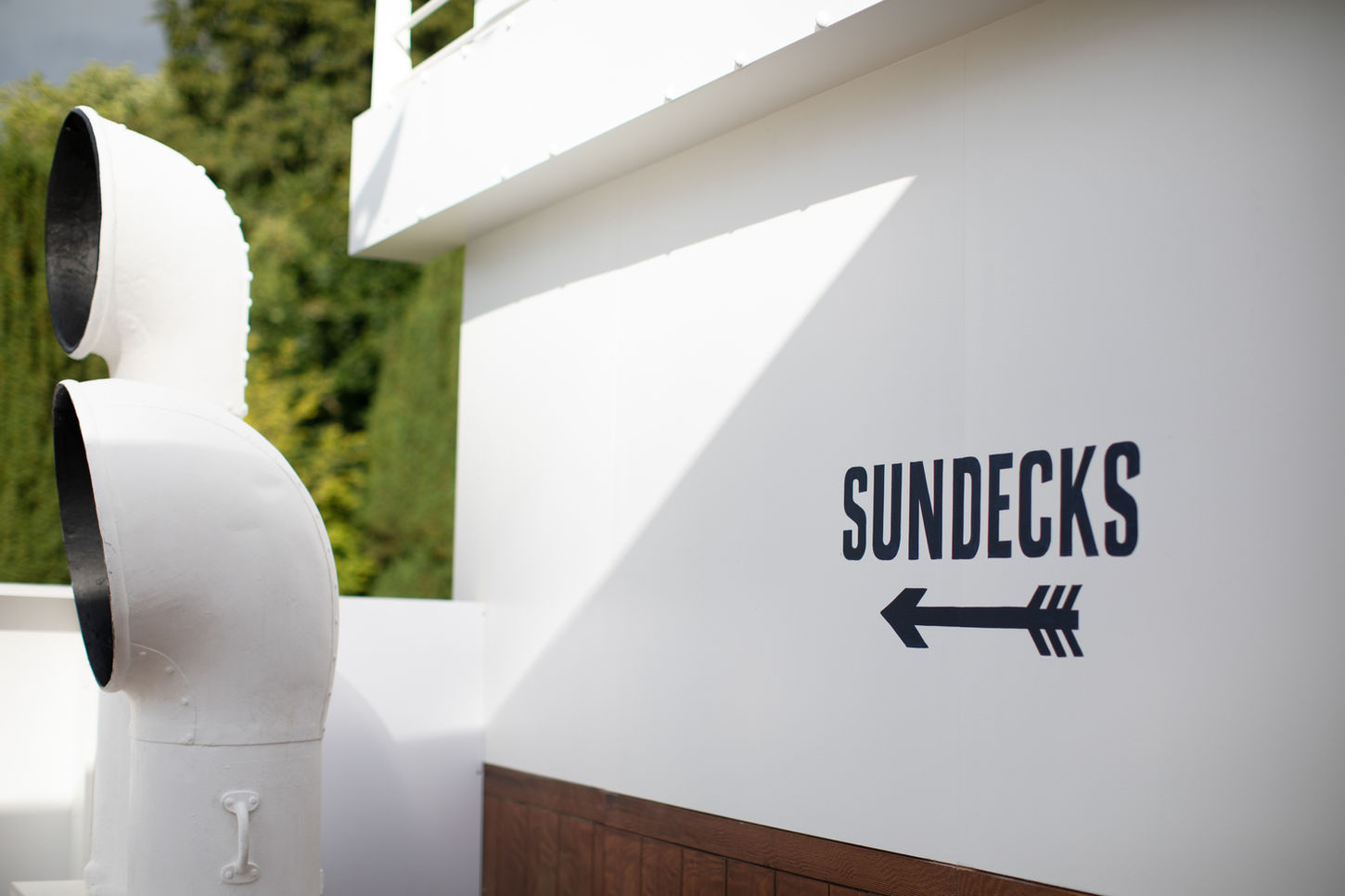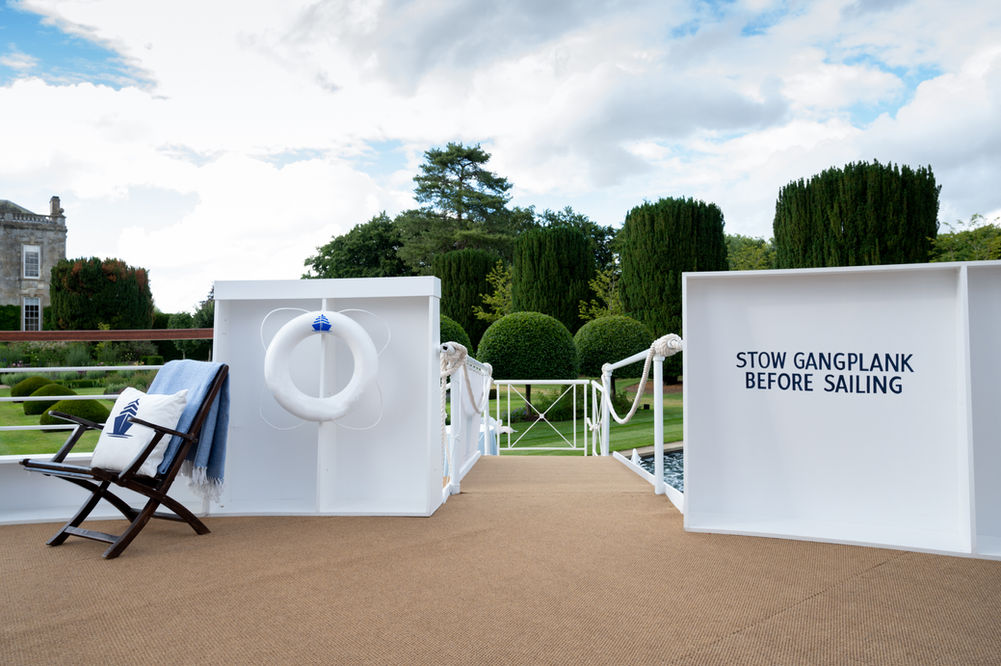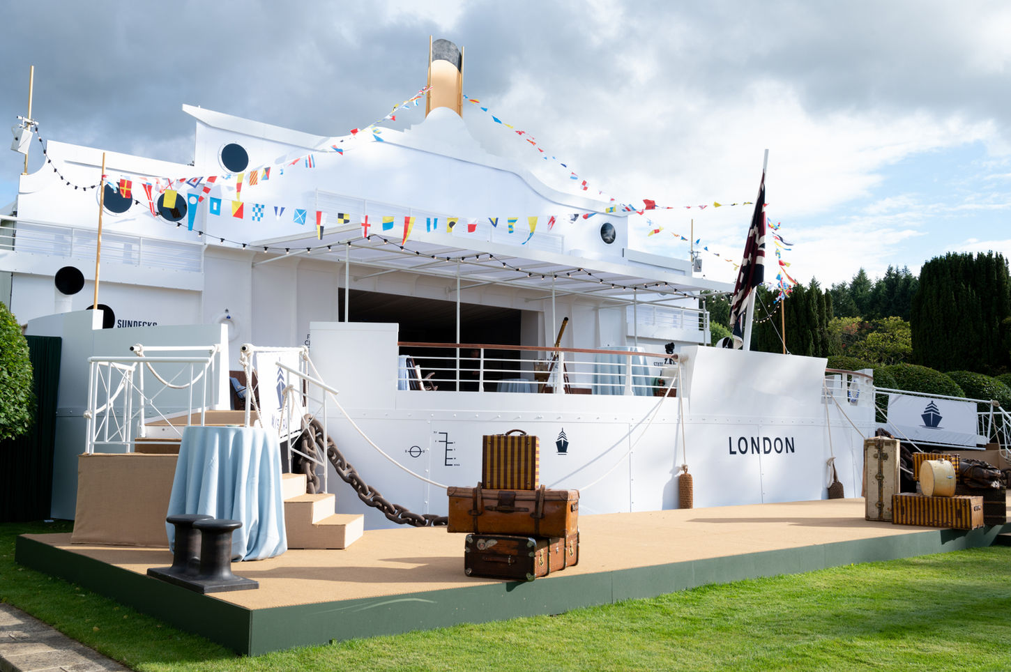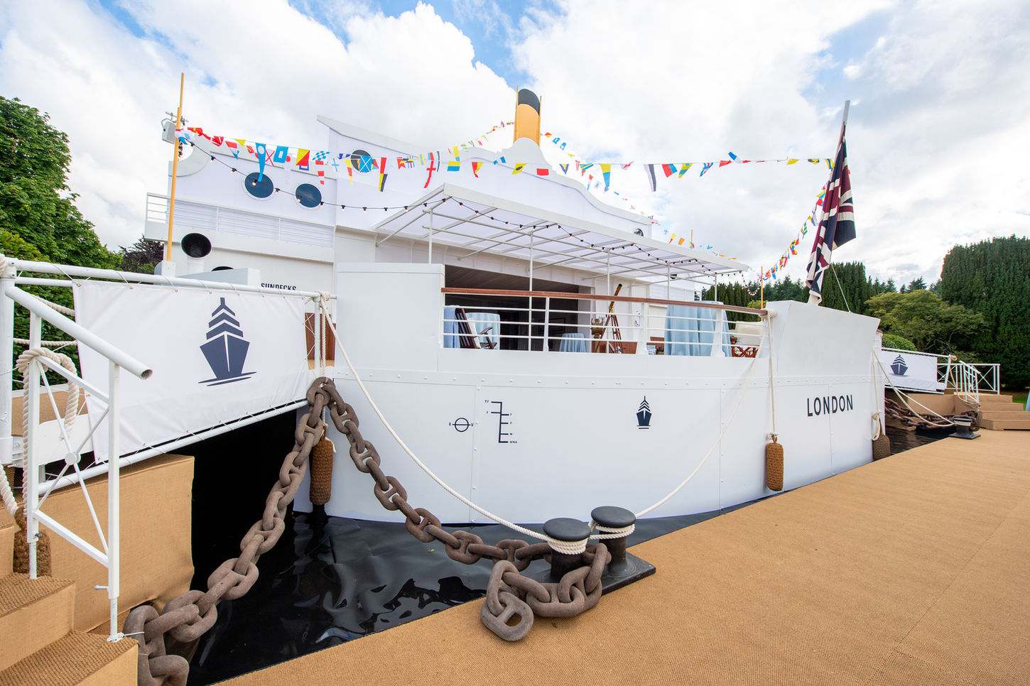 Their beautiful garden became the harbour for their very own ocean liner. A bespoke marquee was dressed to resemble the aft deck of a 1930s, trans-Atlantic liner. Inside we create a First Class dining room, with an incredible stage, which was the setting for a 22-piece orchestra, a performance of “Anything Goes”, the FABBA Girls and the supreme Diana Ross kept the guests partying until the small hours.